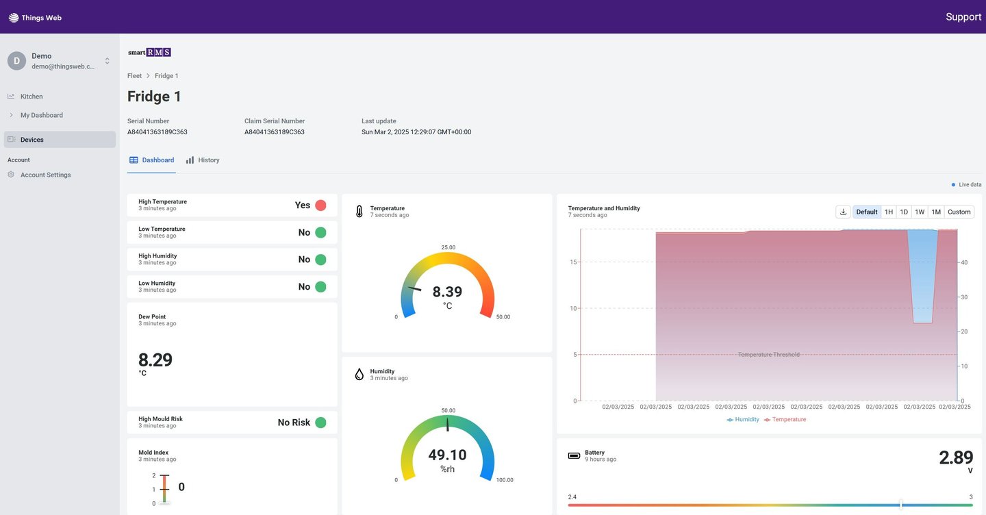 Tailored to Your Needs: Set specific thresholds for temperature, humidity, or any other parameter like Battery level that matters to your operations.